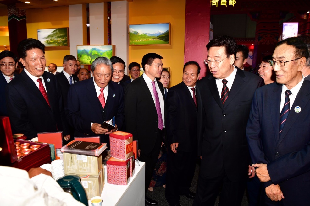 西藏自治区领导和中外嘉宾参观第四届藏博会展览展示